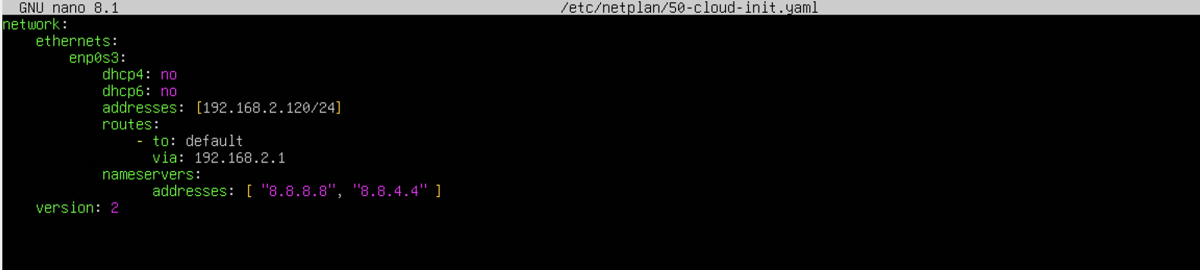 Далее откройте файл конфигурации Netplan, расположенный по адресу /etc/netplan/50-cloud-init.yaml. Используйте предпочтительный текстовый редактор (например nano или vim).