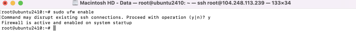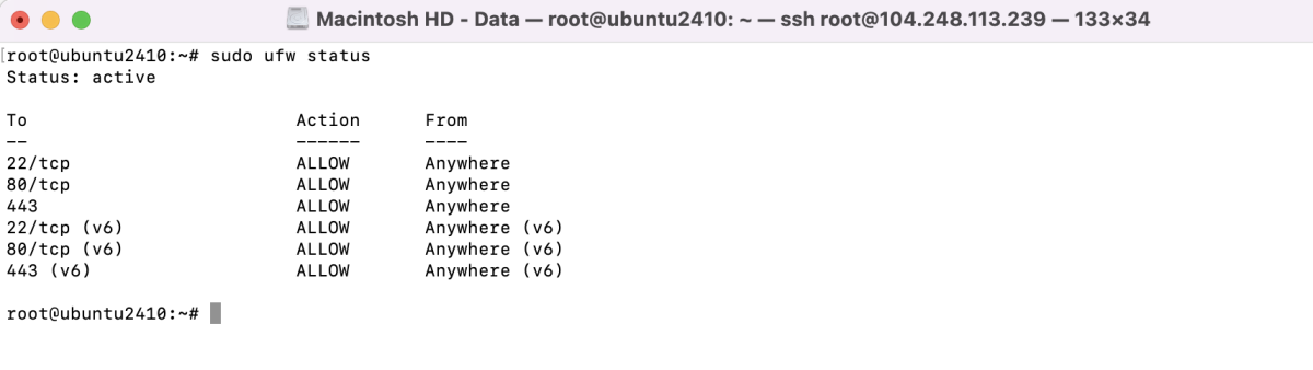 После включения UFW проверьте, что он активен и ваши правила применяются: