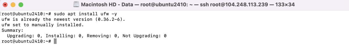 Если UFW не установлен, вы можете установить его с помощью следующей команды: