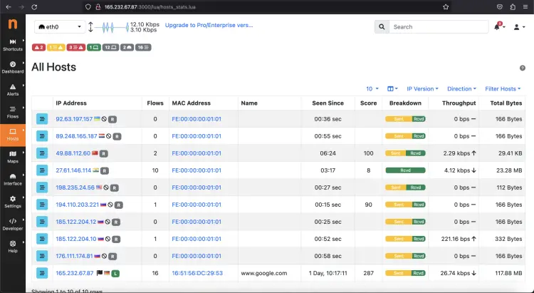 Ntopng предлагает множество функций, таких как: